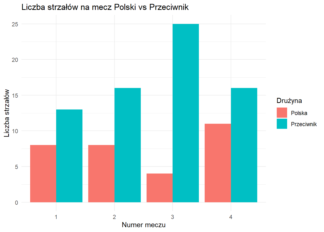 Liczba strzałów - Polska vs przeciwnik